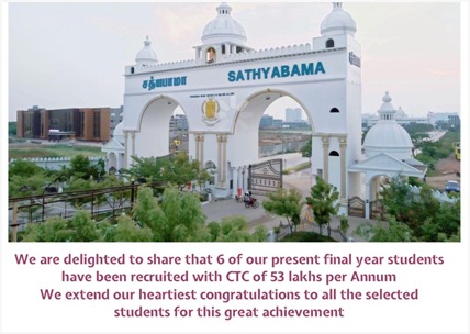 Sathyabama Institute of Science and Technology, located in Chennai, Tamil Nadu, is a reputed institution known for its academic excellence and modern infrastructure.
